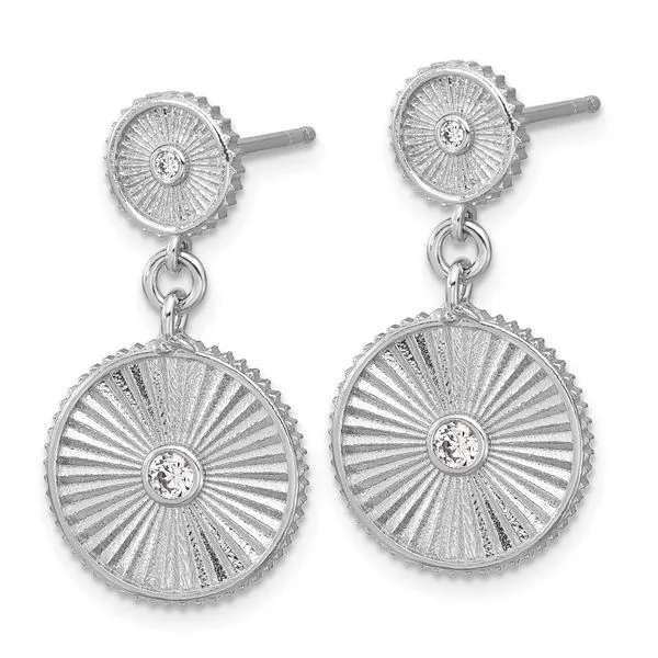 (336) 838-5964Leslie's SS RH-plat CZ Polished/Grooved Circle Dangle Post Earrings