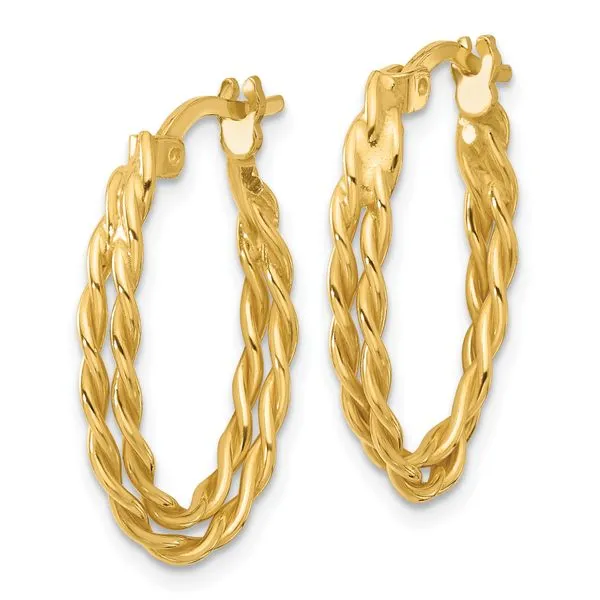 Leslie's Sterling Silver Gold-tone Polished and Twisted Oval Hoop Earrings Image 2 Michael's Jewelry North Wilkesboro, NC